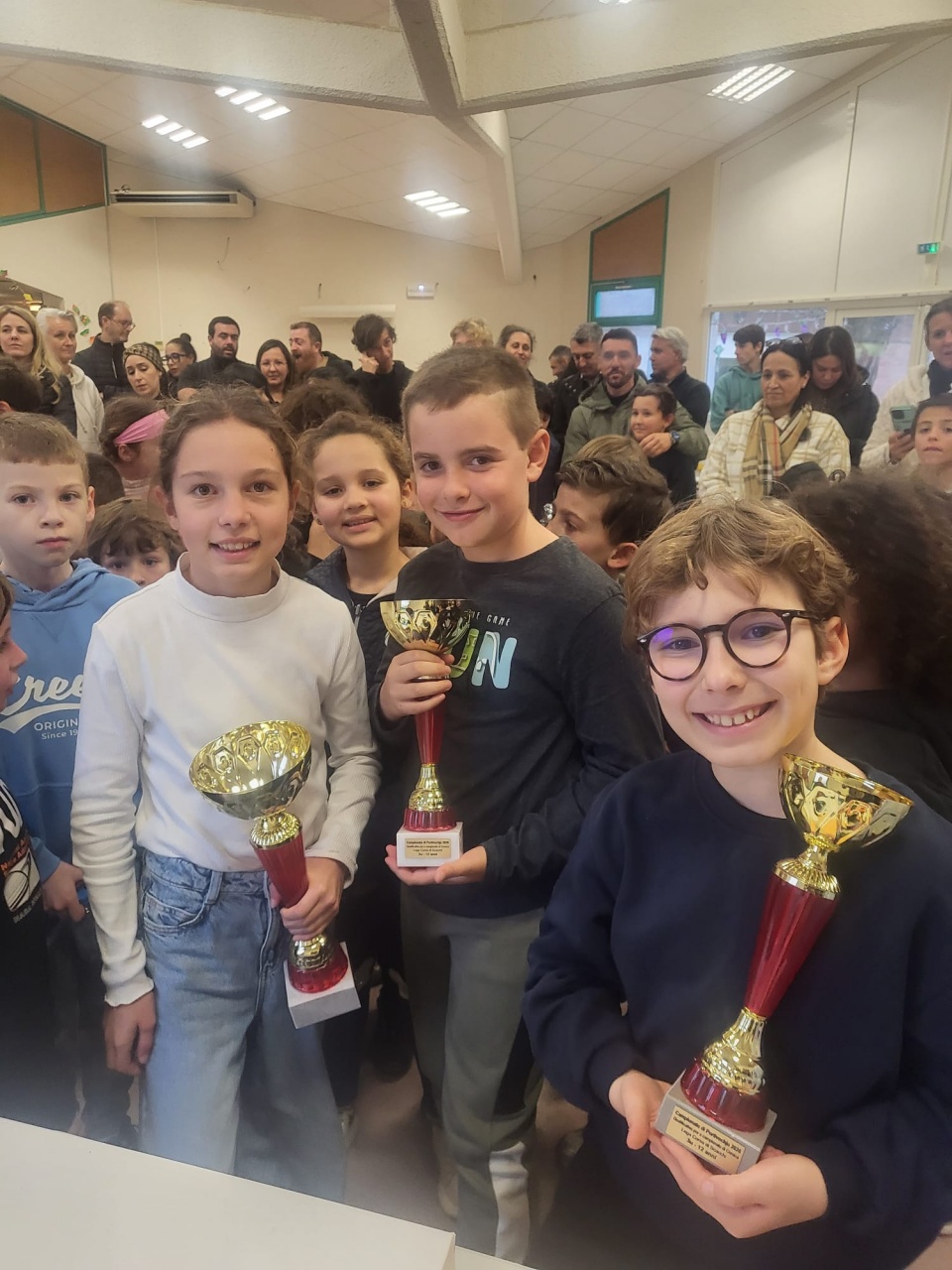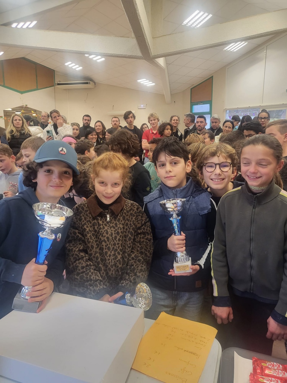 Répartis en trois tournois — 40 petits poussins, 23 poussins et 18 joueurs dans le tournoi 12 à 16 ans — les enfants ont enchaîné les parties au rythme de 15 minutes + 3 secondes, dans une atmosphère à la fois appliquée et joyeuse.
