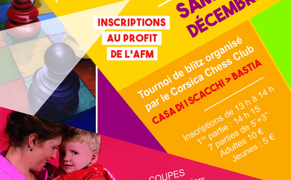 Bastia le 3 décembre, et Calvi le 4... des tournois de blitz sont organisés au bénéfice de l'association française contre les myopathies. Le Samedi la casa di i scacchi de Bastia accueillera les...