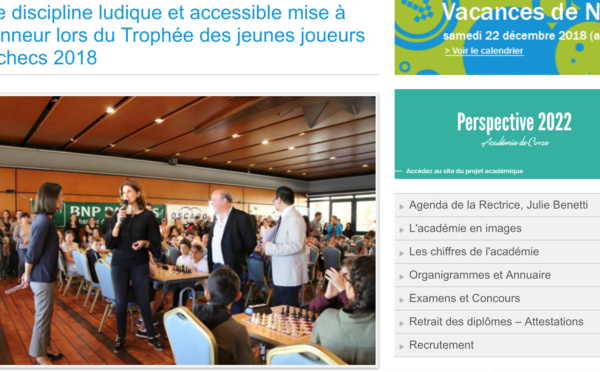 Le site de l'Académie de Corse souligne les vertus socio-éducatives des Échecs - 14/11/2018