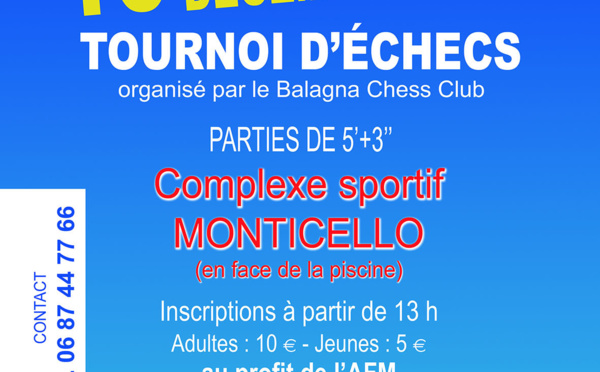 Suite à l’annulation dimanche dernier pour cause d’alerte rouge du blitz du téléthon organisé par le Balagna Chess Club, le tournoi aura lieu finalement ce dimanche 16 décembre au complexe sportif de...