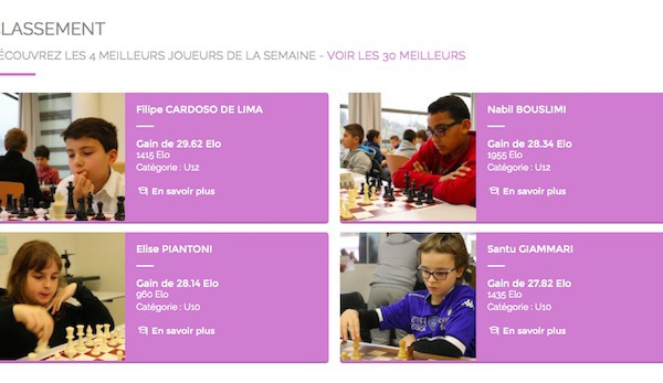 Sur le nouveau site du elo corse vous aurez, chaque semaine, le classement des meilleures performances elo. Ne soyez pas étonnés, la plupart du temps ce seront de jeunes joueurs qui seront mis ainsi...
