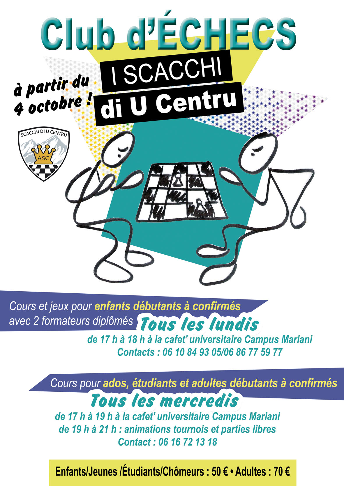 • MERCREDI Cours de 17h à 19h : pour ados, étudiants et adultes (débutants et confirmés) à la Cafeteria universitaire; campus Mariani