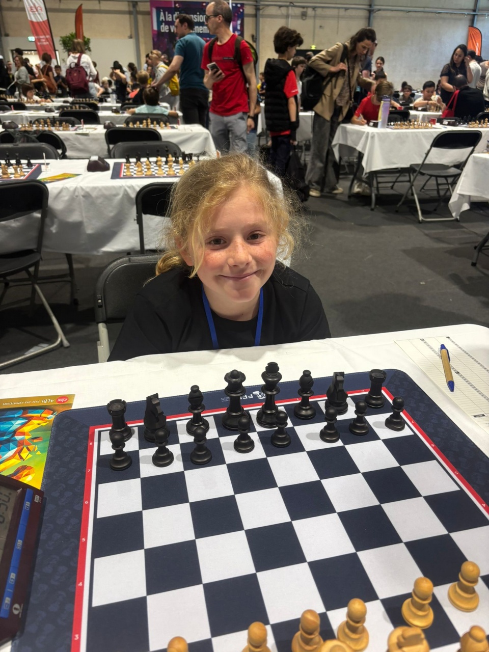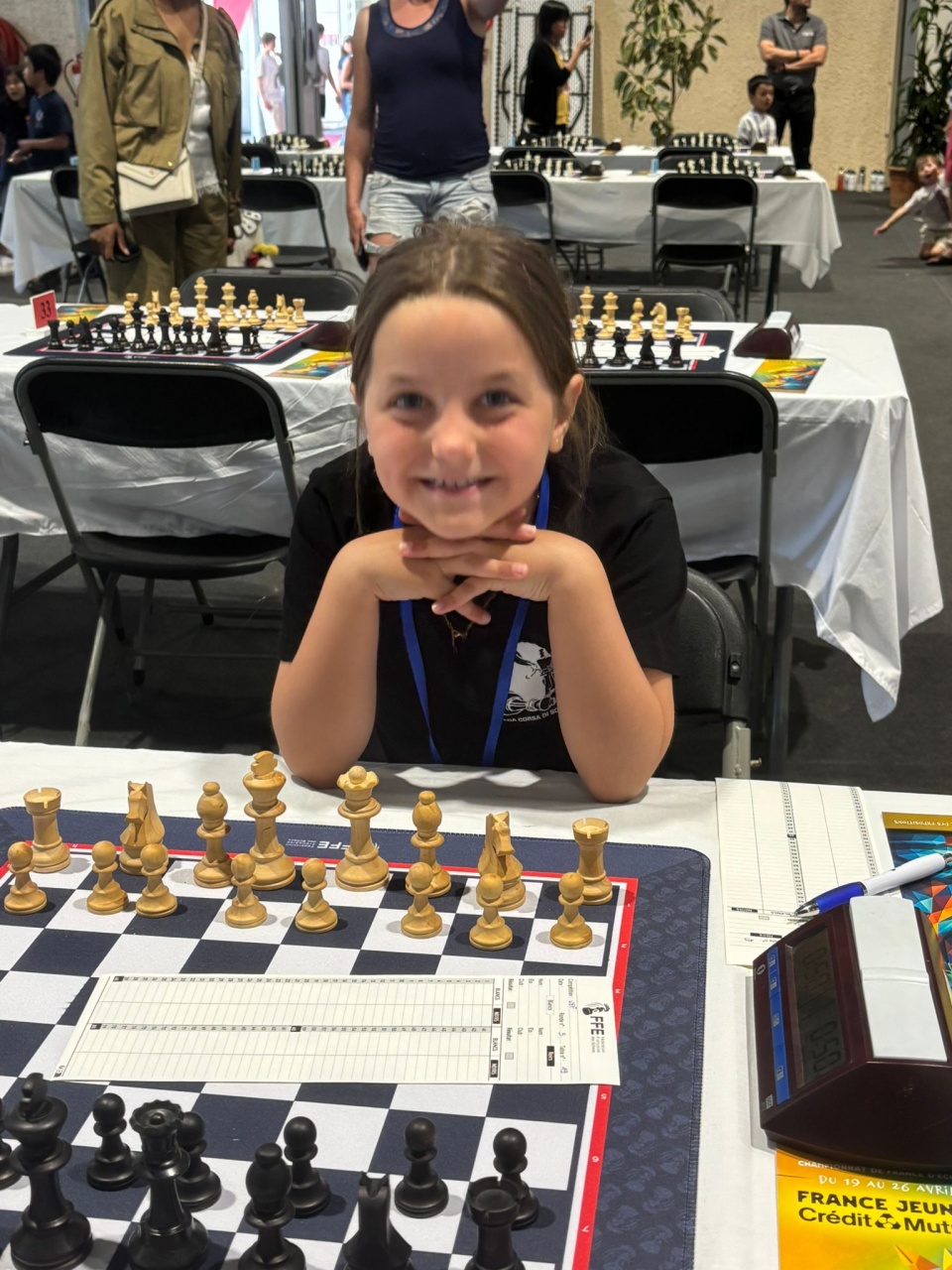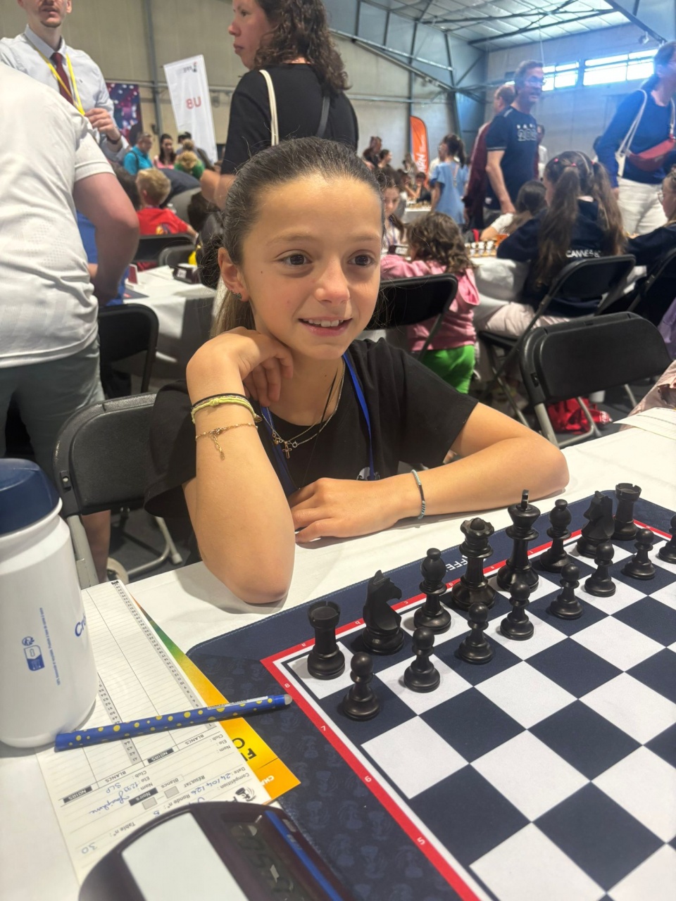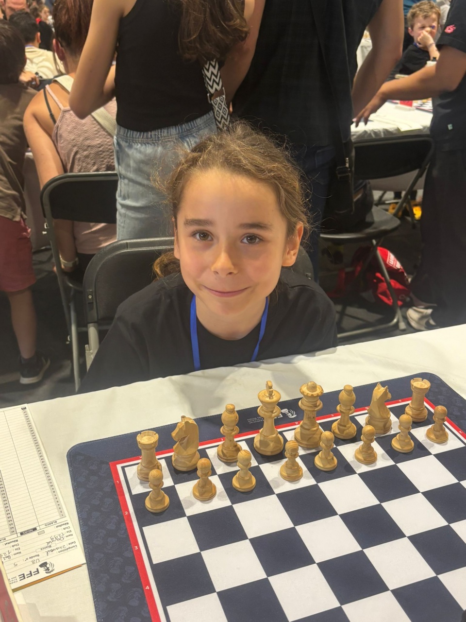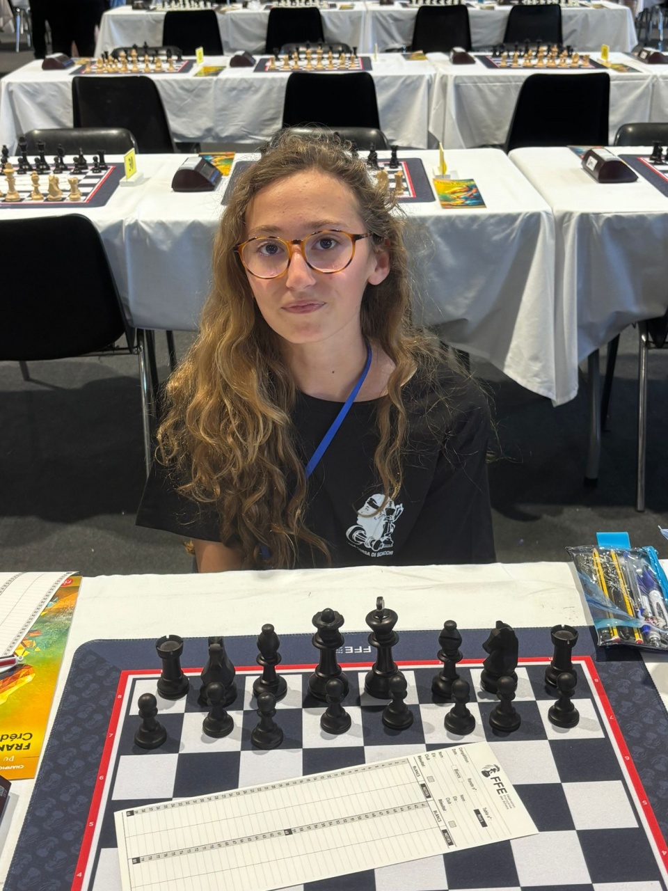 Déjà sacrée championne de France il y a deux ans à Agen, Cerise a une nouvelle fois confirmé son statut parmi les meilleures joueuses de sa catégorie. Engagée en U16F, elle a livré un tournoi de très haut niveau, restant en course pour le titre jusqu’à la dernière ronde. Elle conclut finalement à une remarquable 5ᵉ place, preuve de sa régularité et de sa capacité à rivaliser avec les meilleures joueuses nationales.