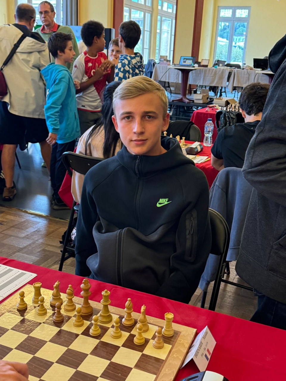 Dans l’Open Cavalier, Hélio Deladerrière confirme sa progression en terminant 4e et empochant au passage quelque 130 points elo (7 pts / 9, perf. 2114)