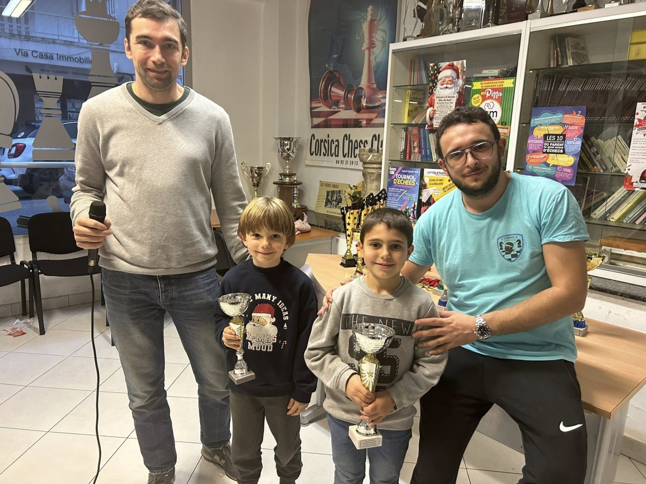Côté récompenses, des coupes ont été remises aux trois premiers du classement général, ainsi qu’aux deux meilleurs joueurs de chaque catégorie Elo corse, de moins de 300 à moins de 1600. Fidèle à sa volonté de valoriser la pratique chez les plus jeunes, le club a également tenu à ce que chaque enfant reparte avec une médaille, souvenir de cette belle journée festive.