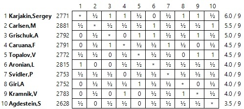 La partie se termina par le partage du point 6 coups plus tard sur une répétition.