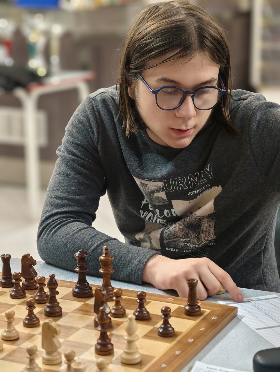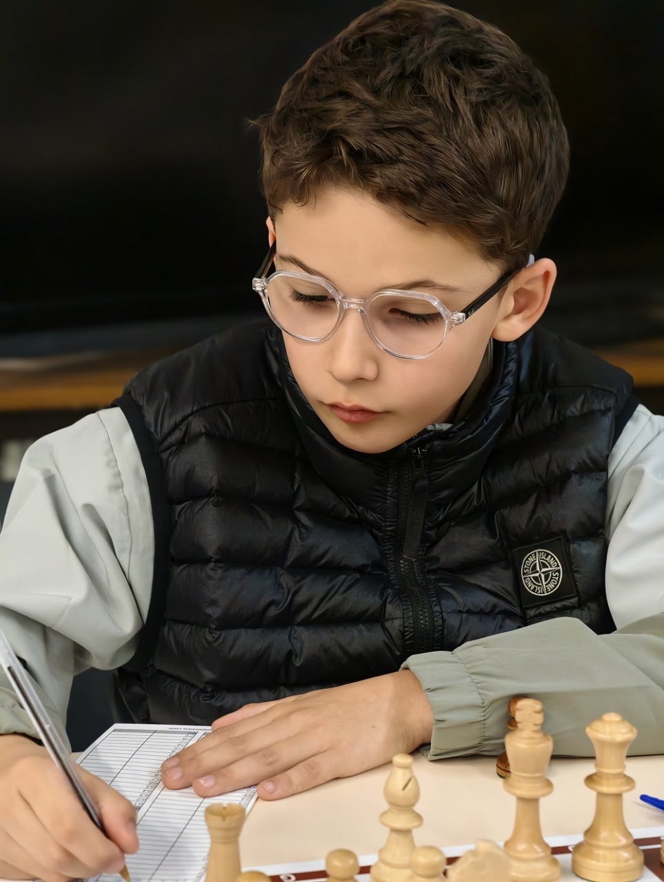 La ronde 3 a notamment été marquée par une surprise à l’échiquier 1, avec la victoire d’Hélio Deladerrière face à son frère Apollo, pourtant mieux classé d’environ 200 points Elo. Hélio a fait la différence grâce à un sacrifice de qualité,lui permettant d’entrer dans une finale avec deux pions passés décisifs.