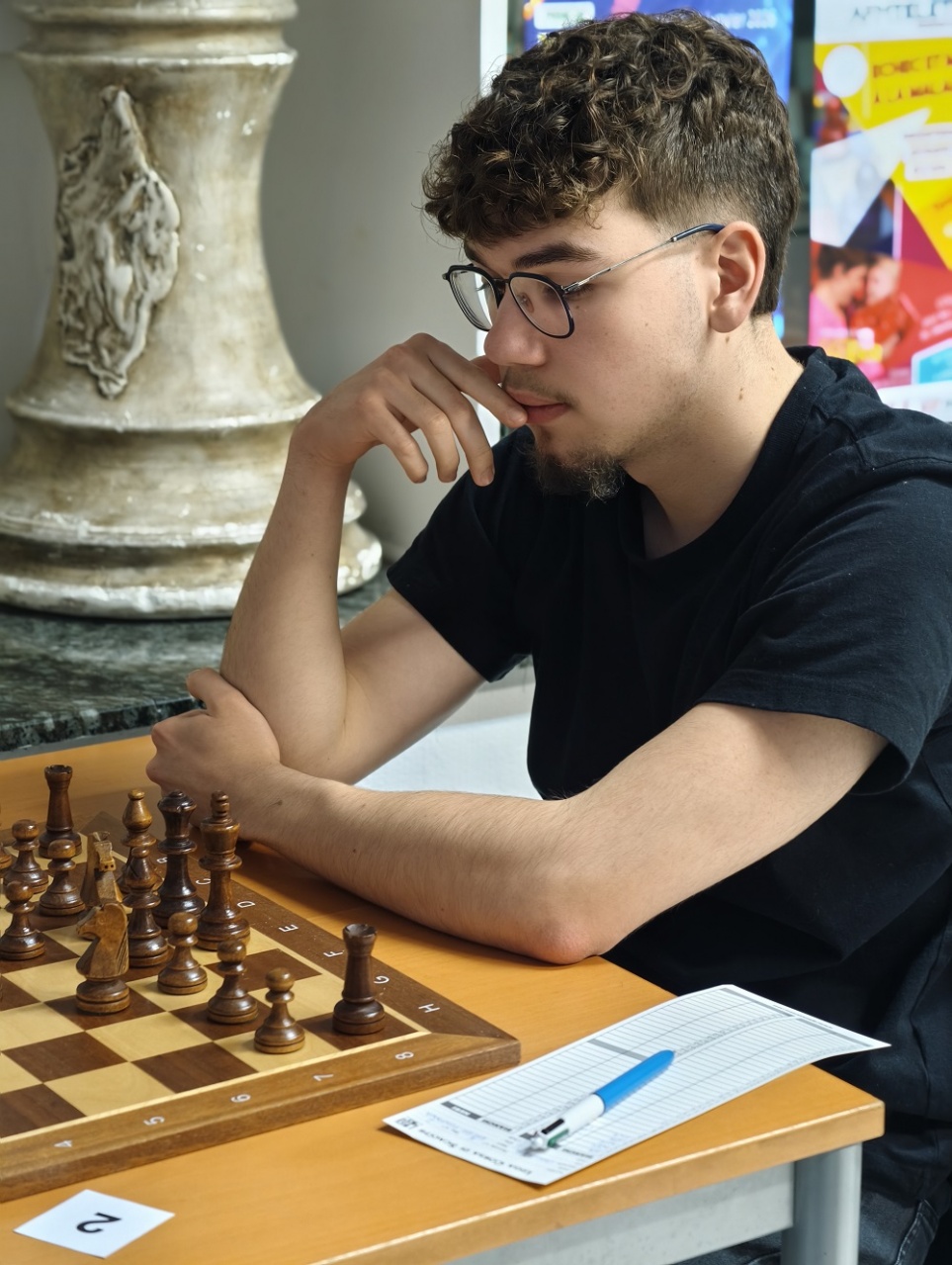 Autre fait marquant de cette ronde, la nulle concédée par Matteo Ratier Fontana, champion de Corse en titre et l’un des grands favoris de l’Open, face à Niculai Todirascu. Une partie particulièrement disputée, qui a duré près de trois heures, et qui s’est conclue sur une finale fou et pion contre cavalier et pion. Malgré un léger avantage, Matteo n’est pas parvenu à faire la différence face à la défense solide de son adversaire, auteur à cette occasion d’une très belle performance.