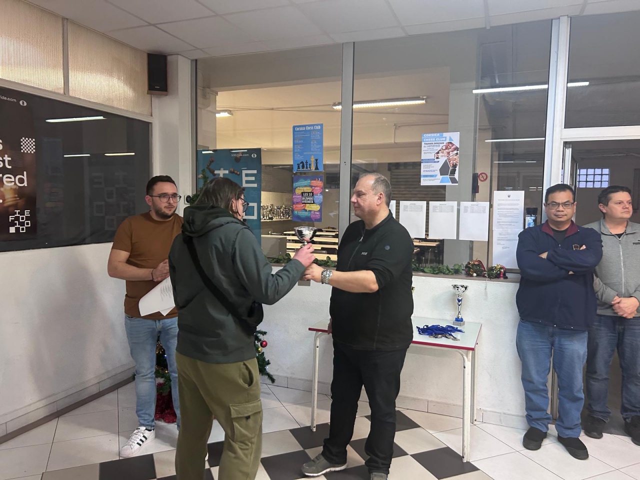 La remise des prix, a été assurée par les arbitres Jean-Philippe Orsoni et Robin Frisoni. Ce dernier a profité de ce moment de clôture pour rappeler les prochains rendez-vous du calendrier échiquéen, qui s’annonce particulièrement dense dès le mois de janvier : le 10 janvier, avec le 2ᵉ Open rapide du club Pion 2B à Biguglia, puis le 18 janvier avec le tournoi du club d’échecs de Casinca organisé au restaurant Chez Walter à Casamozza, avant le temps fort que constituera l’Open de parties longues de Balagne, à Calvi, les 24 et 25 janvier, sous l’égide du Balagna Chess Club.