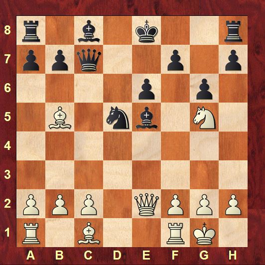 Qg4 Bf6 9. Nf3 Qc7 10. O-O Nxc5 11. Nxc5 Qxc5 12. Ng5 Be5 13. Qh5 g6 14. Qe2