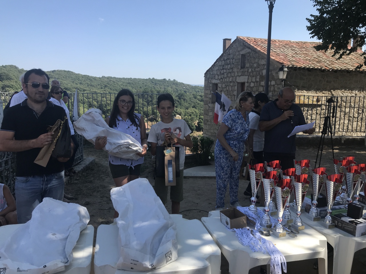 L’accueil fut, c’est une tradition, en tous points remarquable. Sous la houlette de l’infatigable mairesse de Quenza, Roselyne Balesi, les joueurs et accompagnants ont été invité dès leur arrivée à déguster des pâtisseries de la région. Tous les restaurateurs avaient contactés des menus spéciaux, à des tarifs attractifs, afin d’assurer une restauration pour environ 200 personnes en à peine une heure ! Objectif atteint. Tous les participants ont ensuite mis la main à la patte pour remiser chaises et tables en à peine quelques minutes ! La remise des prix s’est ainsi déroulée bien avant le début de la finale de la coupe du monde de football !