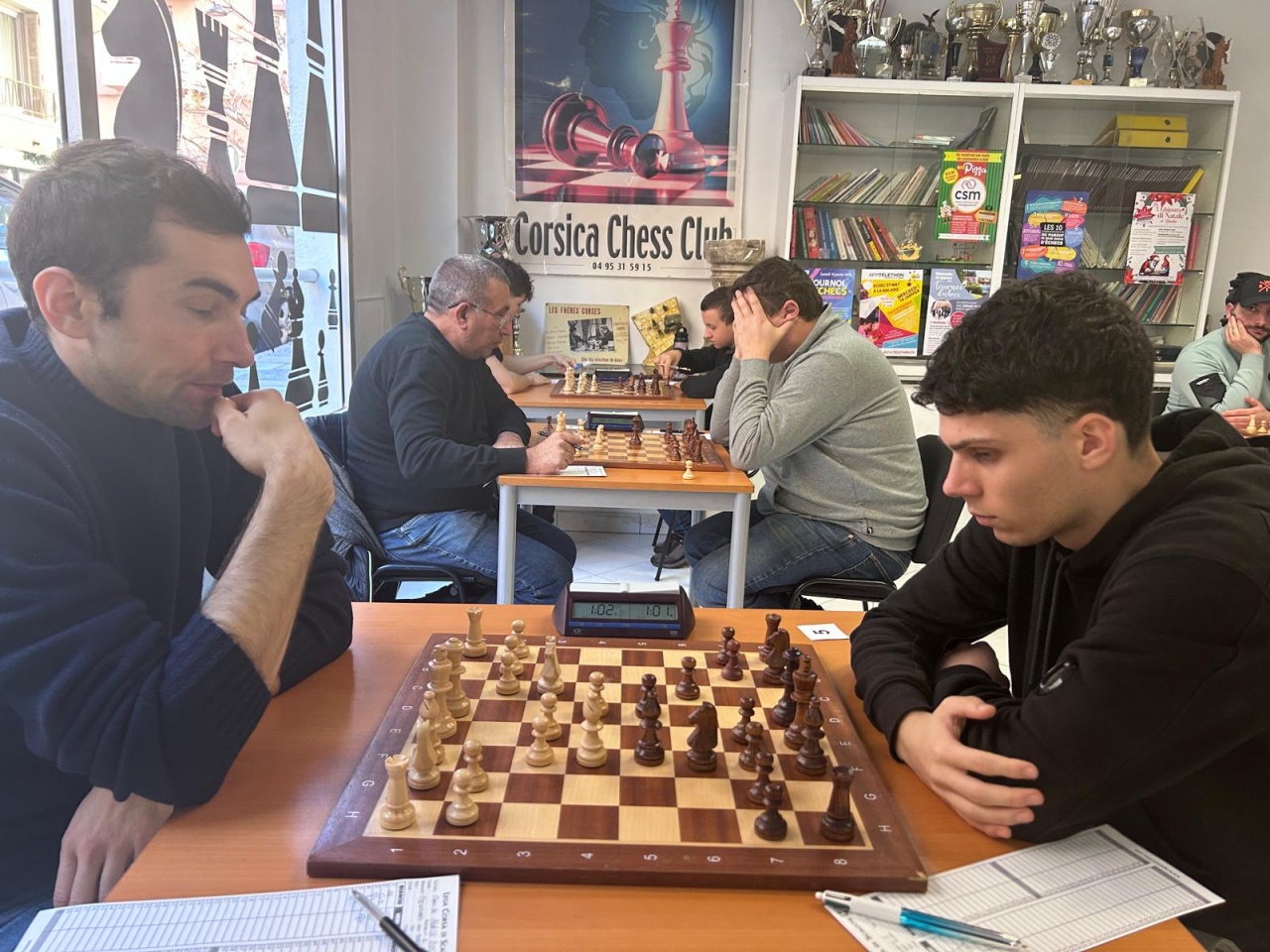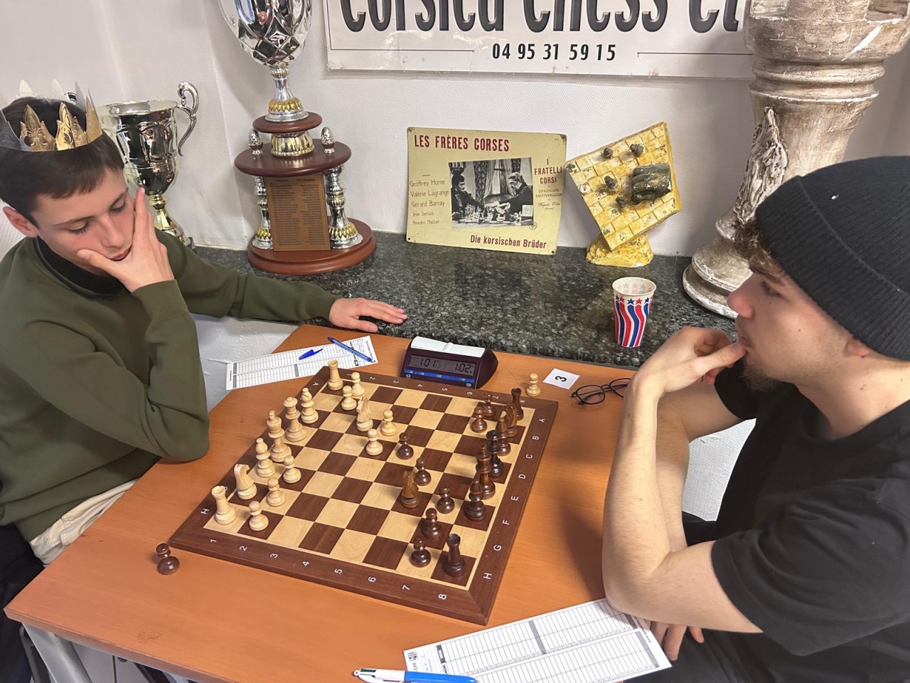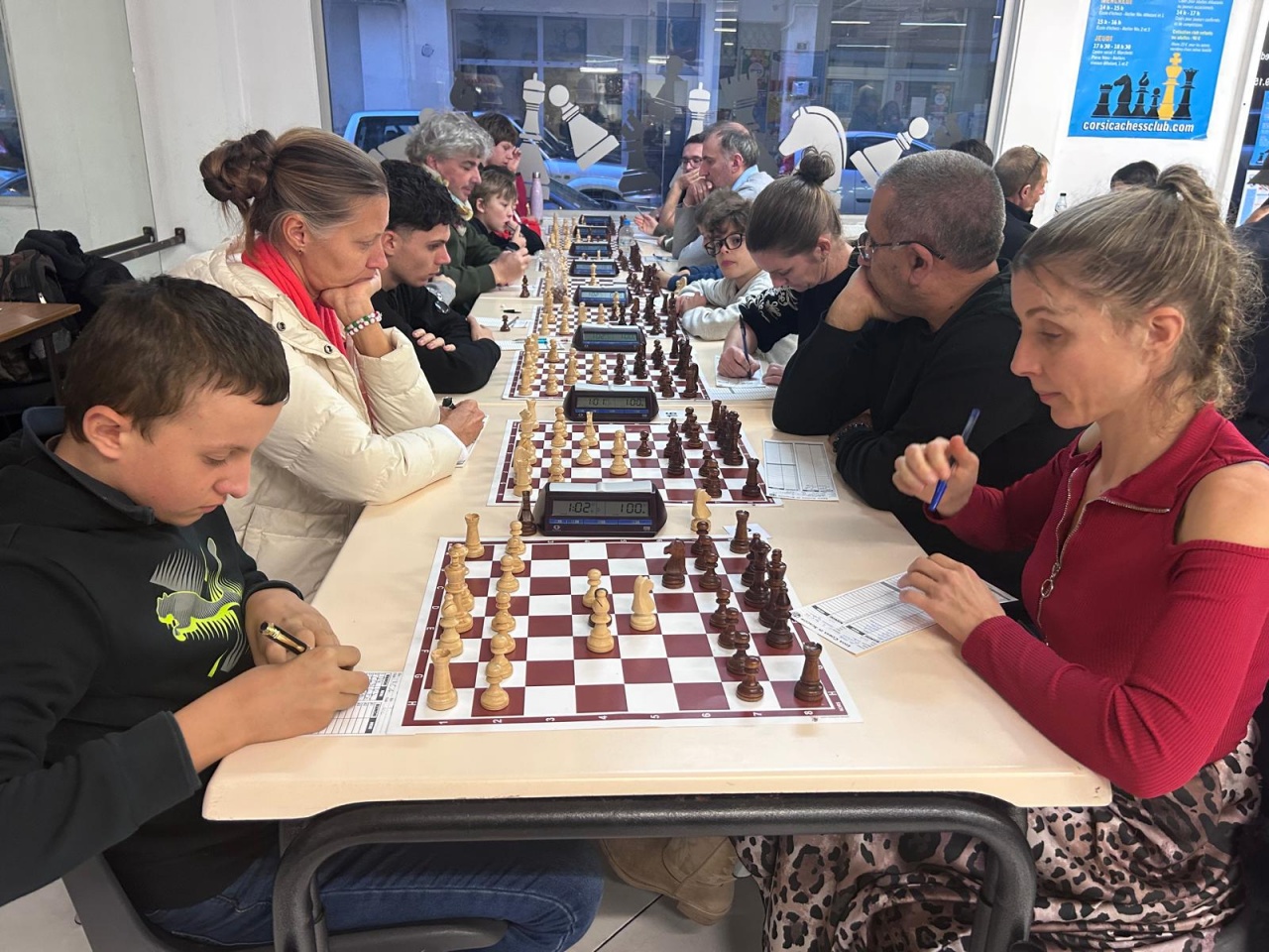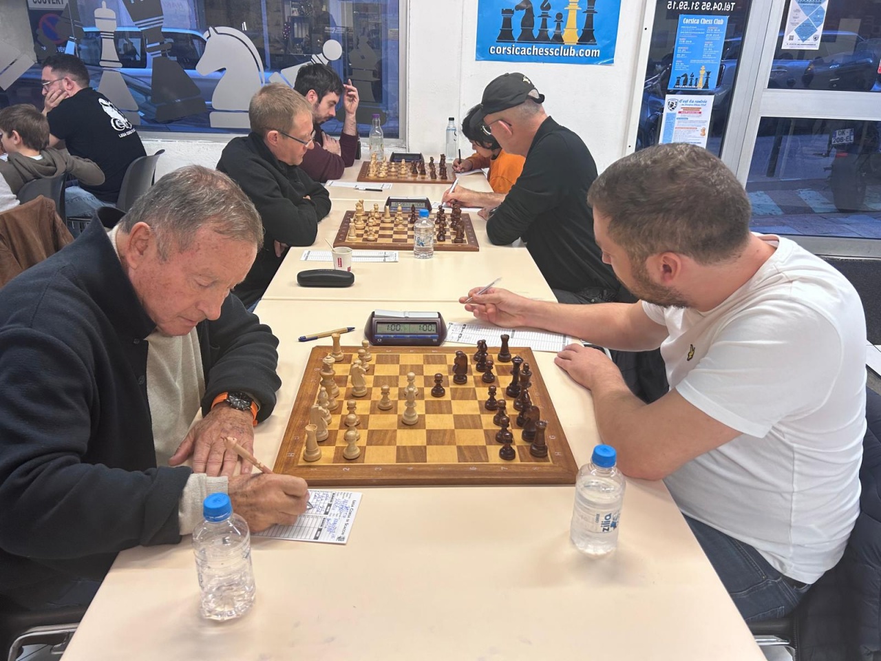 Les deux premières rondes, disputées ce samedi à puis à 17 heures, ont globalement confirmé la hiérarchie attendue, sans surprise majeure dans les parties de tête. Une rencontre a toutefois retenu l’attention : la nulle concédée par Pierre-Louis Pieri, multiple champion de Corse, face à Lisandre Paris. Le jeune joueur est parvenu à forcer le partage du point grâce à une perpétuelle bien construite, au terme d’une partie appréciée pour sa qualité technique et sa maîtrise défensive.