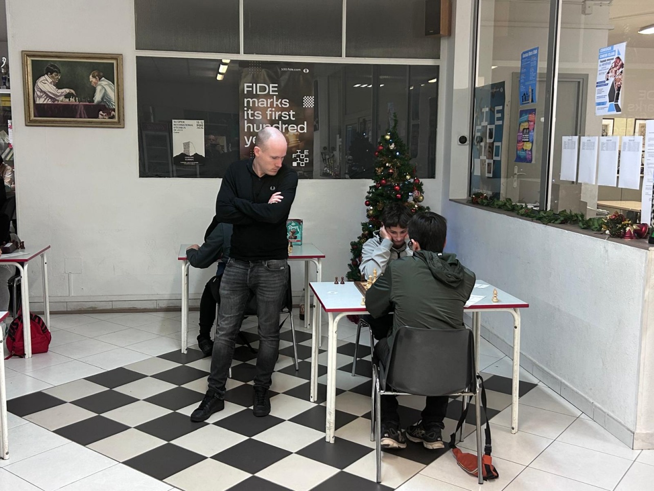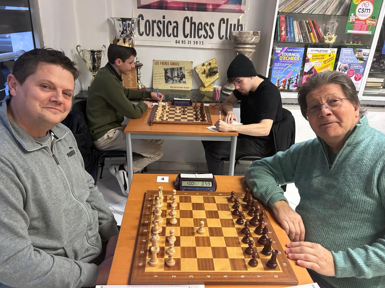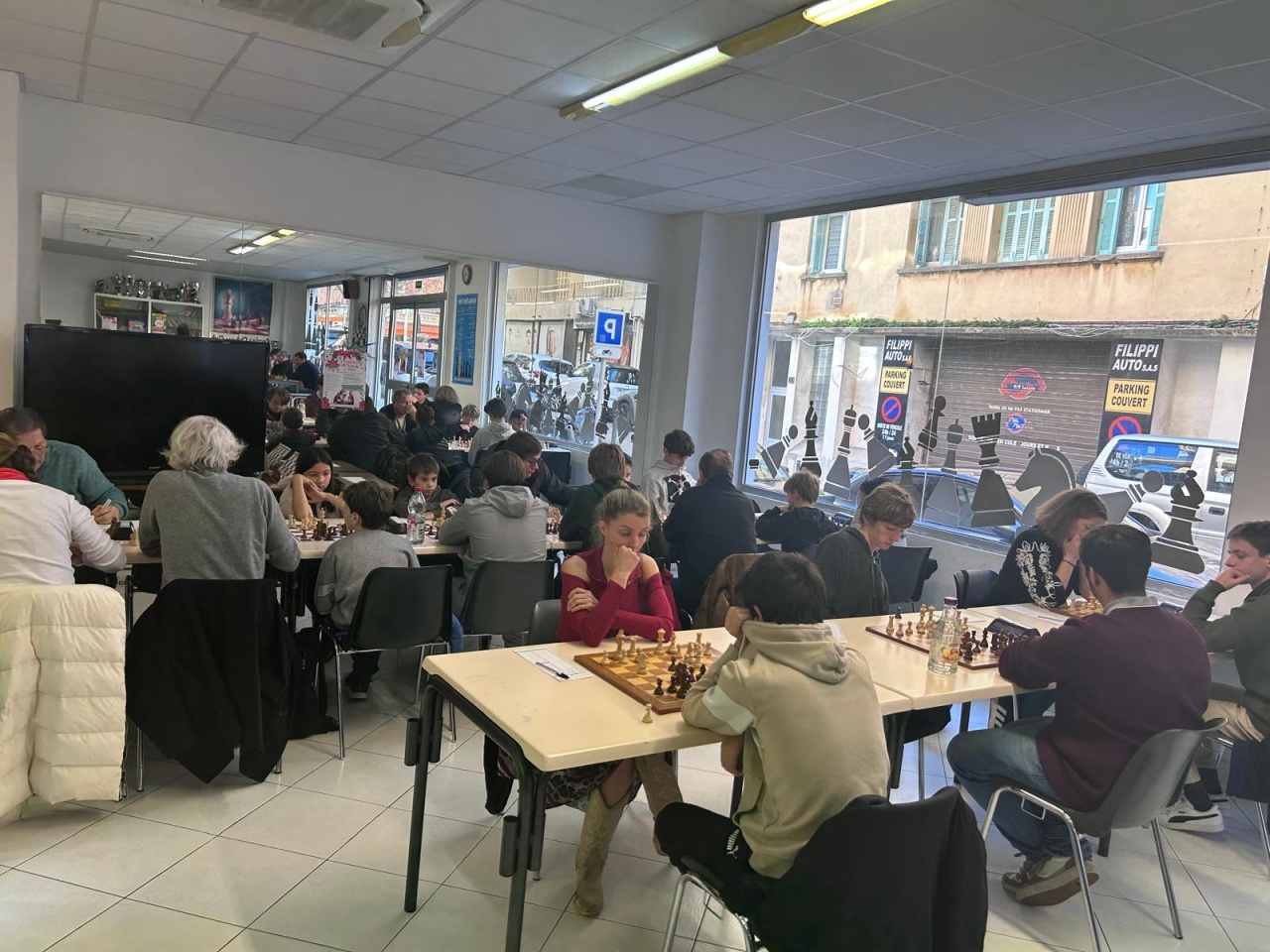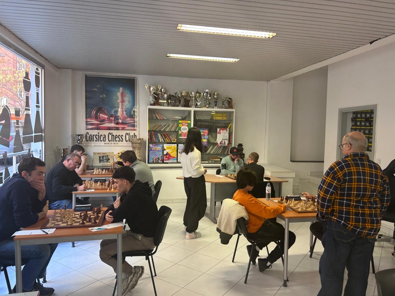 Les deux premières rondes, disputées ce samedi à puis à 17 heures, ont globalement confirmé la hiérarchie attendue, sans surprise majeure dans les parties de tête. Une rencontre a toutefois retenu l’attention : la nulle concédée par Pierre-Louis Pieri, multiple champion de Corse, face à Lisandre Paris. Le jeune joueur est parvenu à forcer le partage du point grâce à une perpétuelle bien construite, au terme d’une partie appréciée pour sa qualité technique et sa maîtrise défensive.