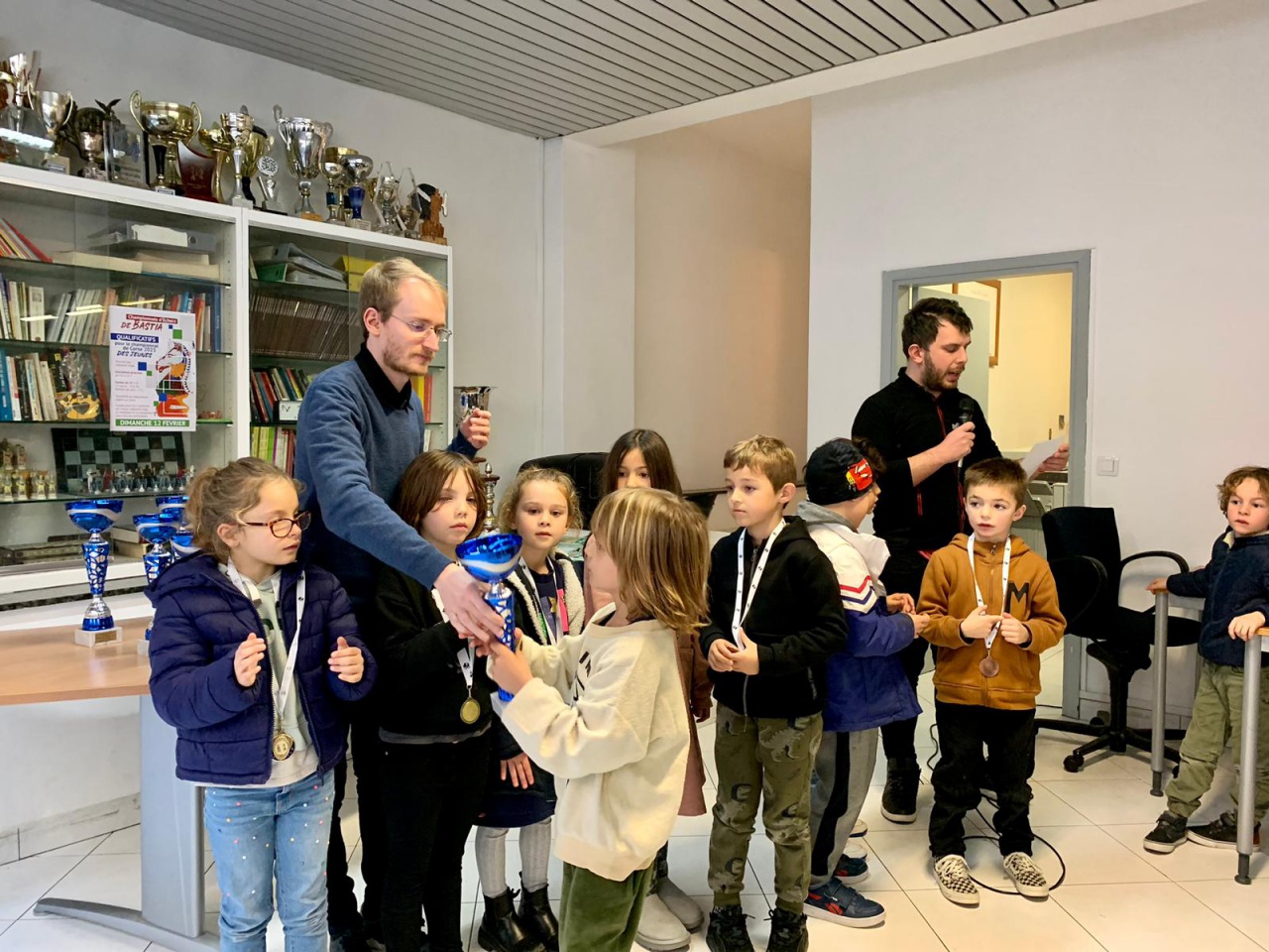 Enfin, chez les moins de 8 ans, beau duel pour la 1ere place entre Paul-Louis Santelli et Anthony Carrarra avec 6/7pts . Paul-Louis l'emportant au départage. 3e, le très prometteur Antoine Riah 5,5/7.