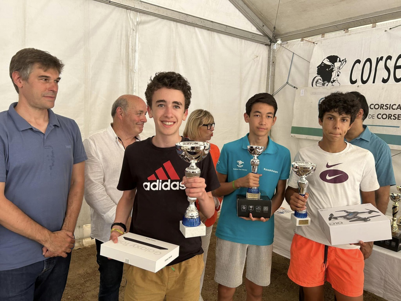 Lors de la remise des prix, les gagnants des catégories moins 2200, 2000, 1800, 1600, féminine et vétéran, ont reçu des récompenses qui incluaient des produits emblématiques de la région, notamment des prizutti AOP de l’Alata Rocca. Ces prix ont été distribués aux trois meilleurs des catégories spécifiques. Les catégories jeunes (moins de 16, 14, 12, 10 et 8 ans) ont reçu de superbes prix en nature, incluant des tablettes Samsung, drones, et caméras sport, récompensant ainsi l'effort et le talent des jeunes participants.