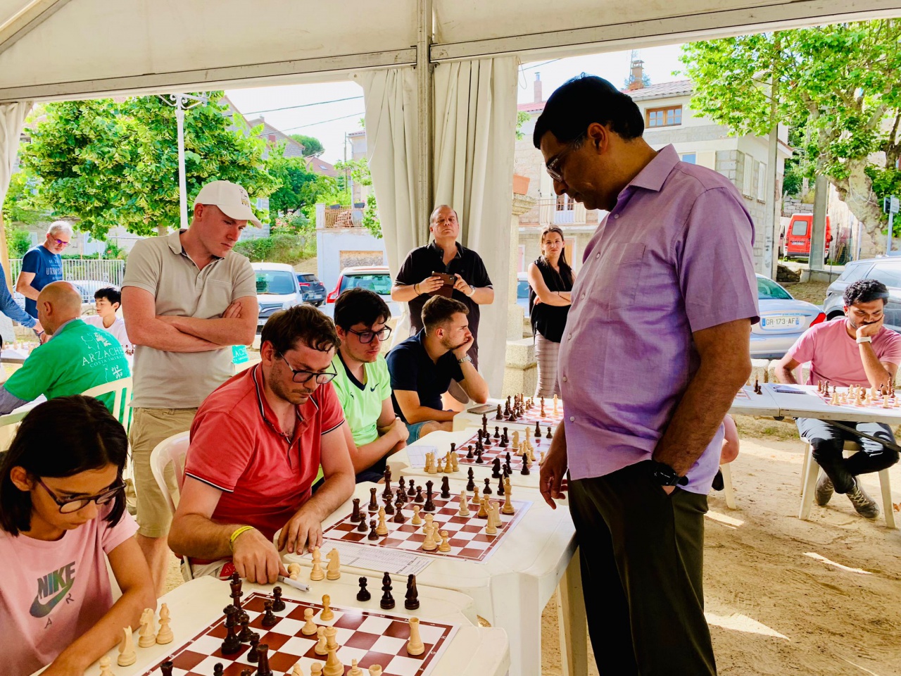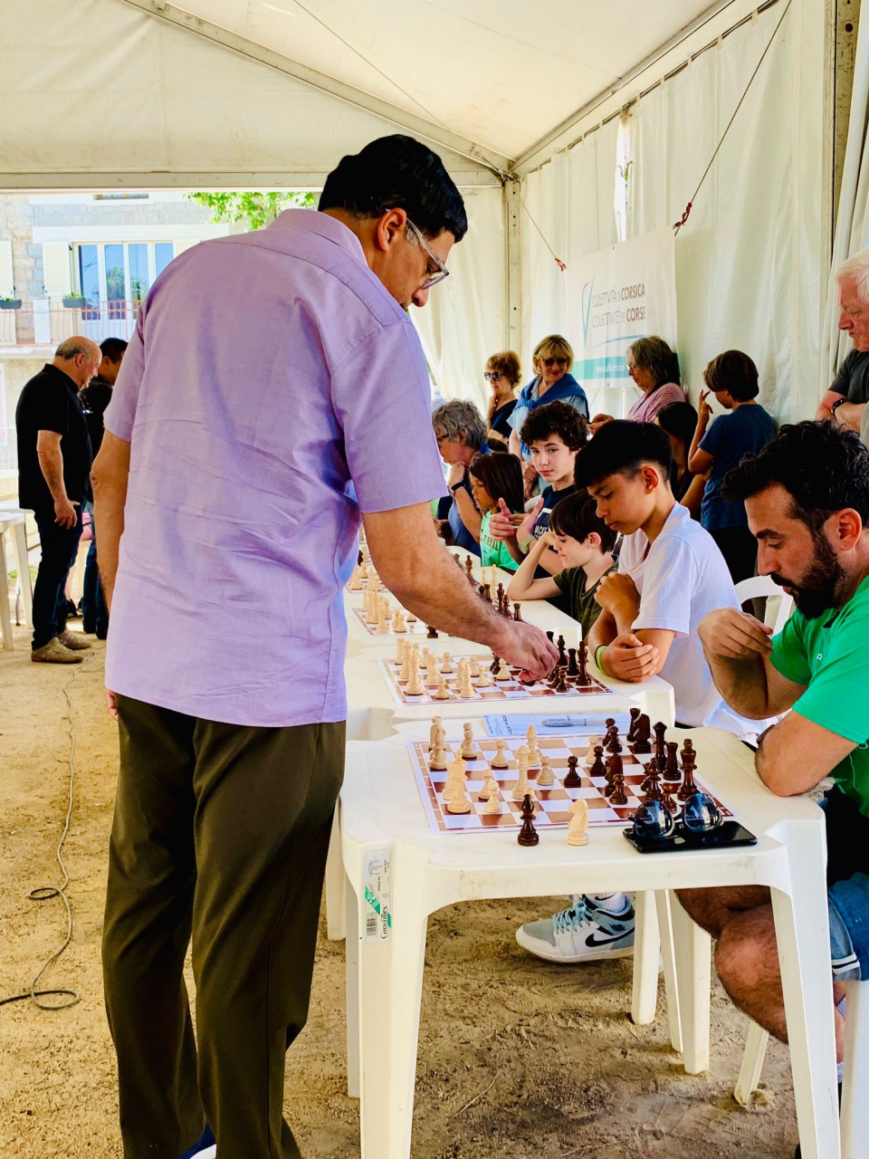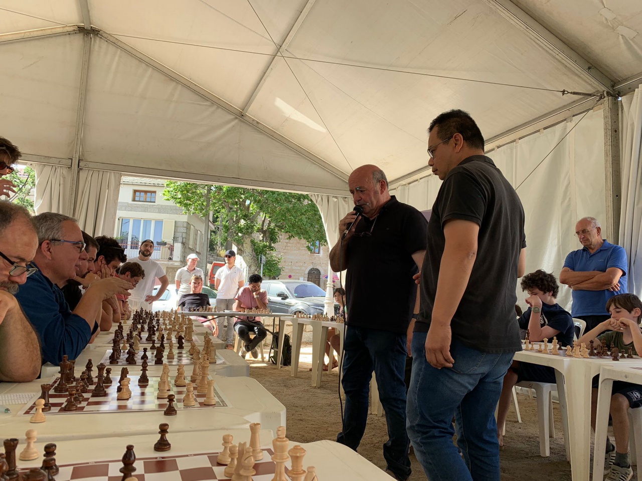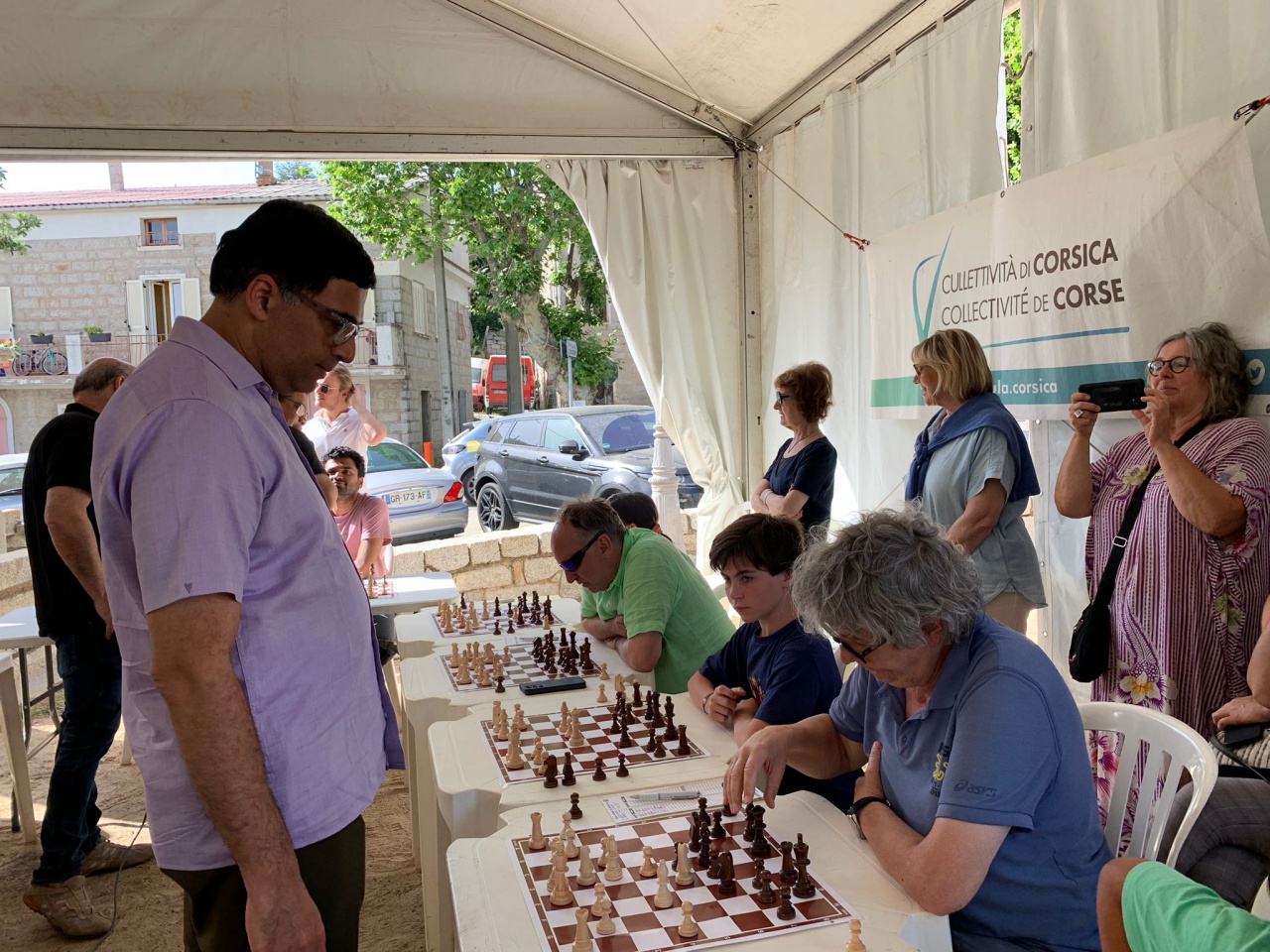 Quenza a vibré ce week-end au rythme des échecs en accueillant le quintuple champion du monde, Vishy Anand, et le double champion de France, Laurent Fressinet, pour une série de séances de parties simultanées exceptionnelles. L'événement, qui s'est tenu le samedi 6 juillet à 17 h, a attiré un grand nombre de passionnés sur la place du village, où les deux champions ont montré toute l'étendue de leur talent.