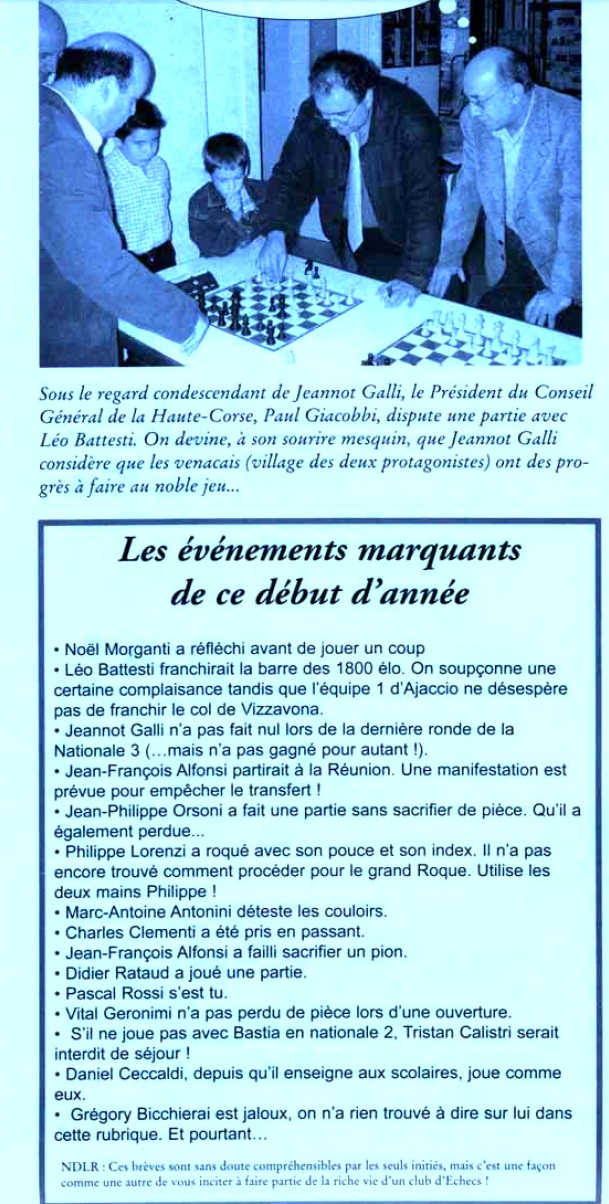 Distribué gratuitement dans les écoles, collèges, lycées et clubs, Scaccanate est aussi un lien puissant pour sensibiliser les scolaires pousser plus loin leur pratique du sport Echecs. Avec, en particulier, les informations détaillées sur les tournois des différents clubs insulaires.