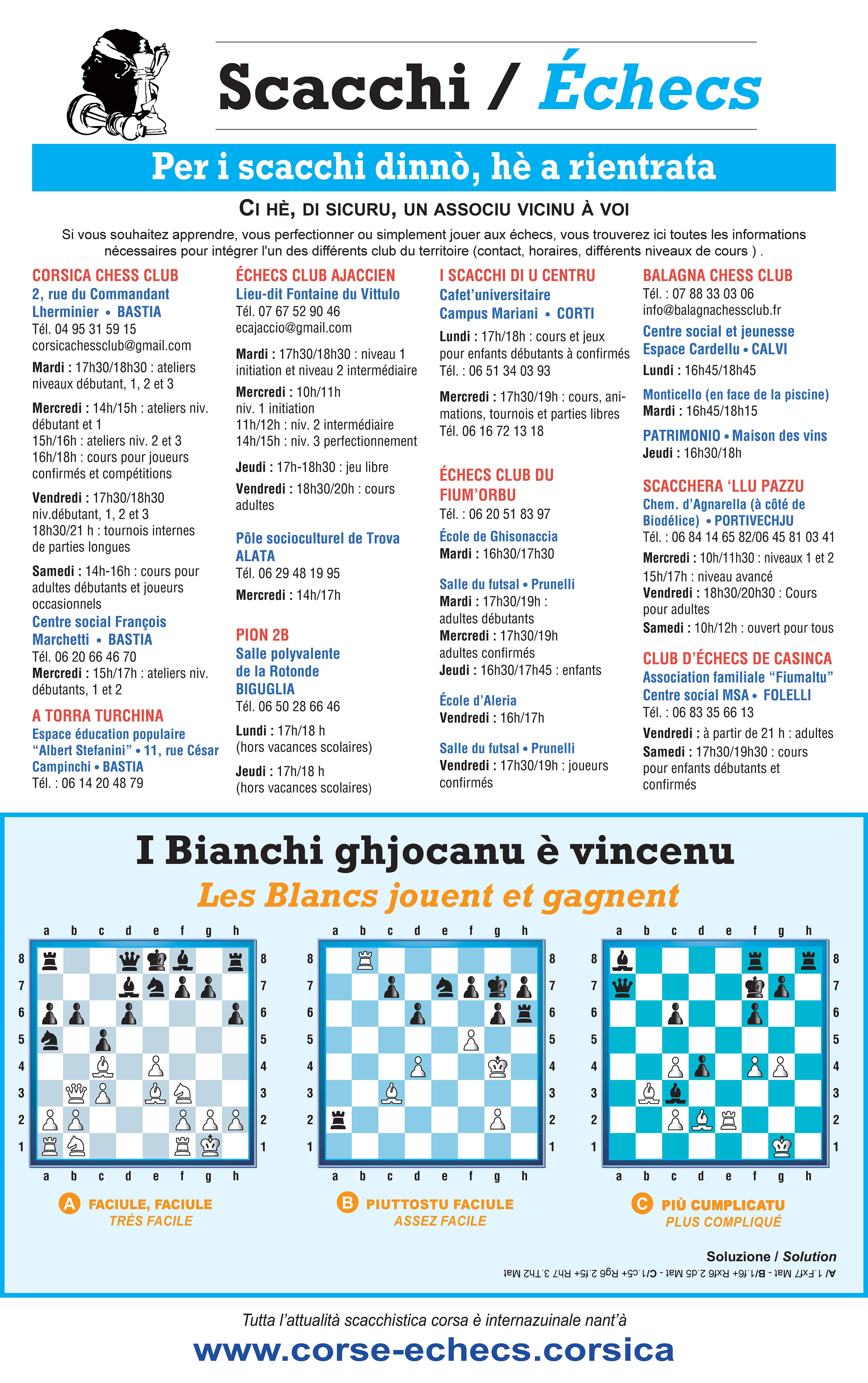 Chaque vendredi, retrouvez notre rubrique Échecs,dans l'hebdomadaire " Settimana " diffusé par Corse-Matin !