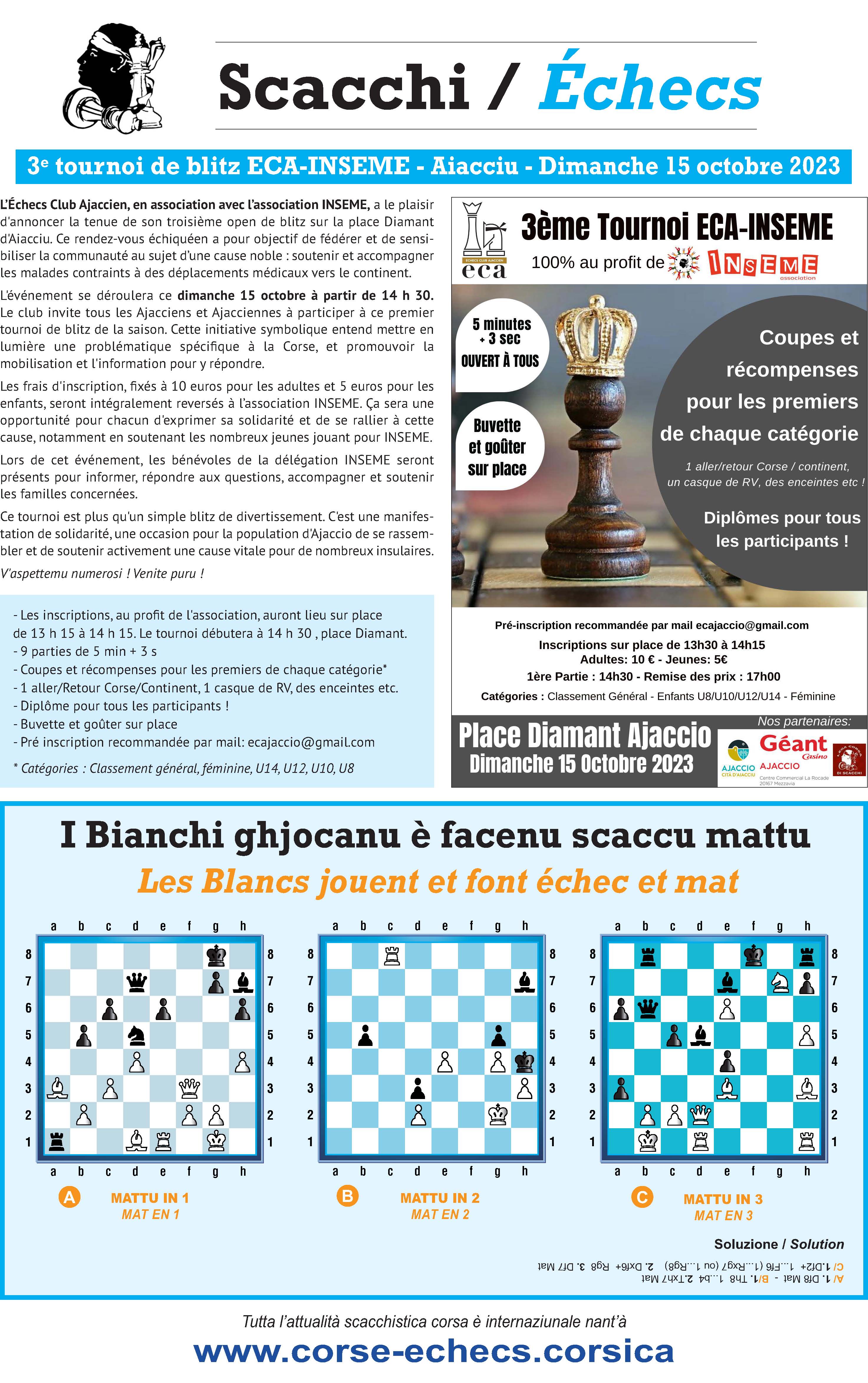 Chaque vendredi, retrouvez notre rubrique Échecs,dans l'hebdomadaire " Settimana " diffusé par Corse-Matin !