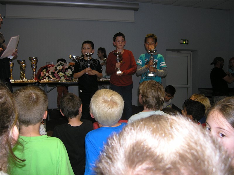 Dans le tournoi de - 1000 élo , essentiellement constitué de scolaires dont c'était la première compétition, le petit Baptiste Senéchal rafle la mise devant Ange Marie Cervetti et Nael Vincensini .