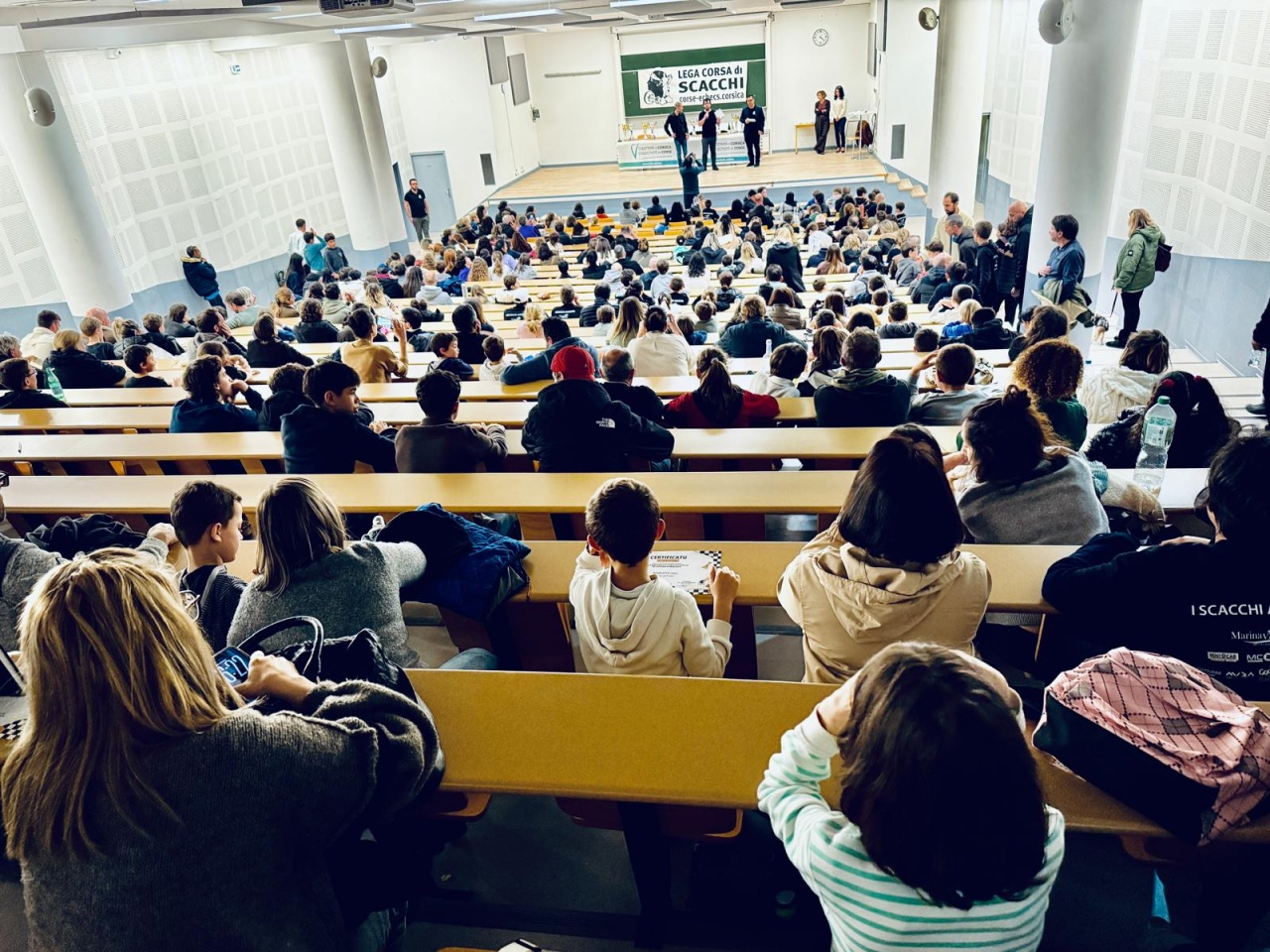 La remise des prix, moment toujours très attendu, s’est déroulée dans une atmosphère chaleureuse au sein de l’amphithéâtre de la Faculté de Droit et de Science Politique de l’Università di Corsica. Près de 350 personnes, parents, accompagnateurs, joueurs et bénévoles, étaient réunies pour assister à cette cérémonie qui venait conclure deux journées intenses de compétition.