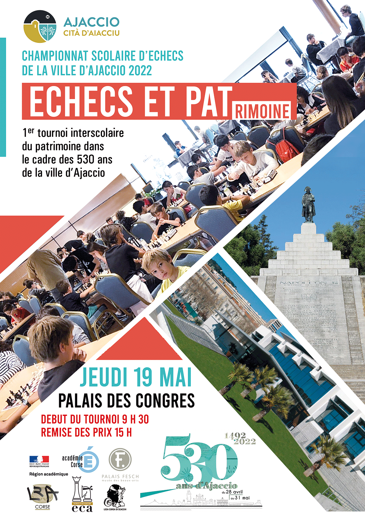 Réalisé en partenariat avec les autorités académiques, la CDC, la ville d’Ajaccio, le musée Fesch, le laboratoire régional d’archéologie (L.R.A), et l’Echecs club Ajaccien cette manifestation aura lieu au Palais des Congrès d’Ajaccio.