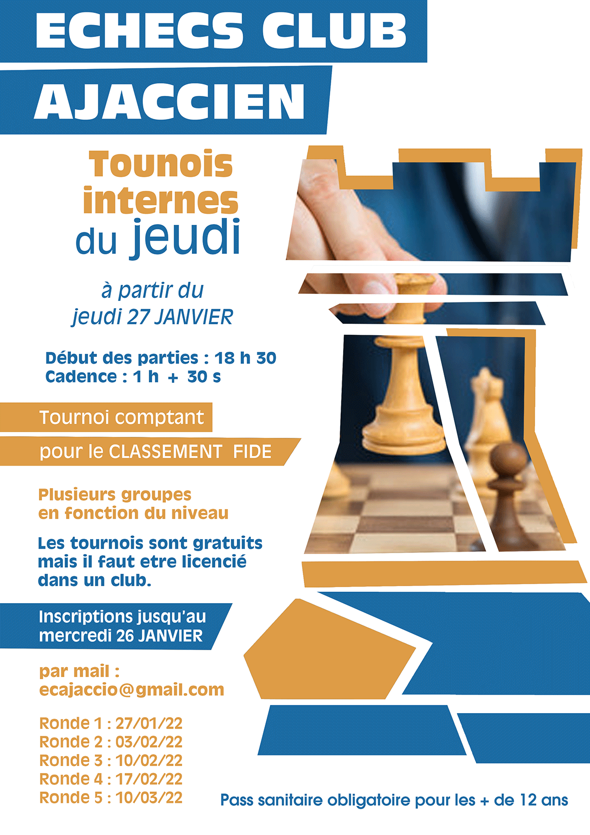 Inscriptions jusqu'au mercredi 26 janvier 2022 par mail : ecajaccio@gmail.com