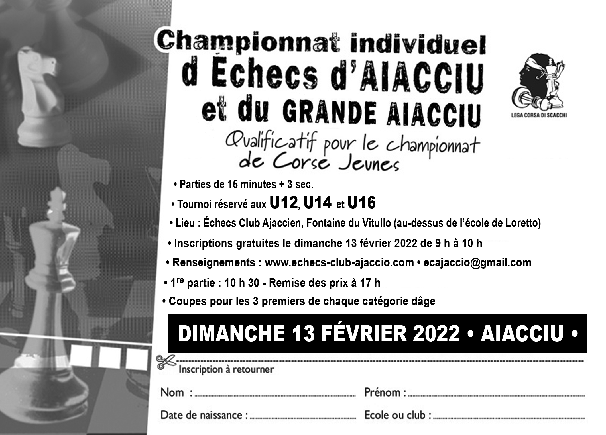 • Renseignements : Échecs Club Ajaccien : www.echecs-club-ajaccio.com - ecajaccio@gmail.com