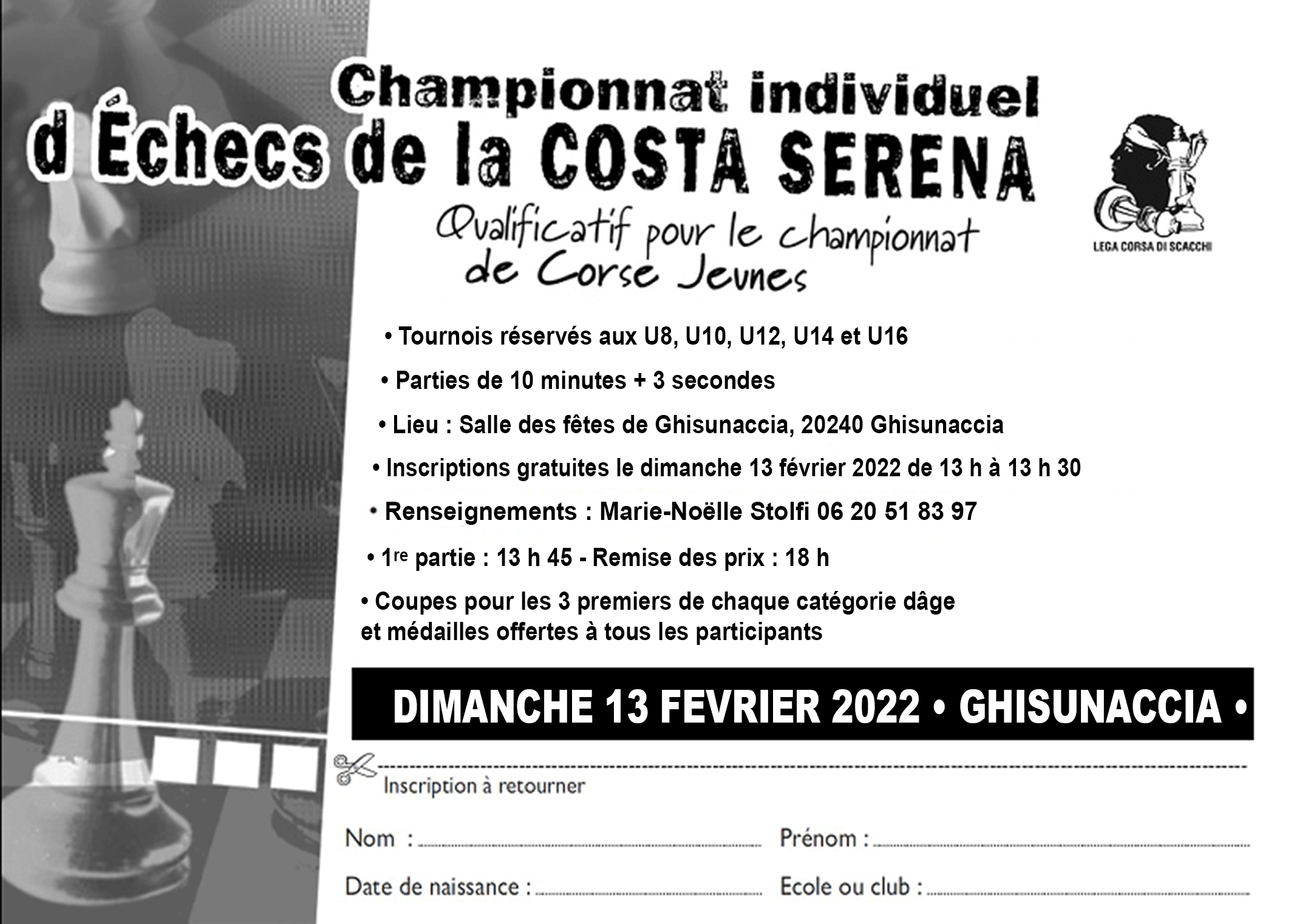 2, rue Commandant Lherminier 20200 Bastia Tel. : 04 95 31 59 15 E-mail : corse-echecs@orange.fr |