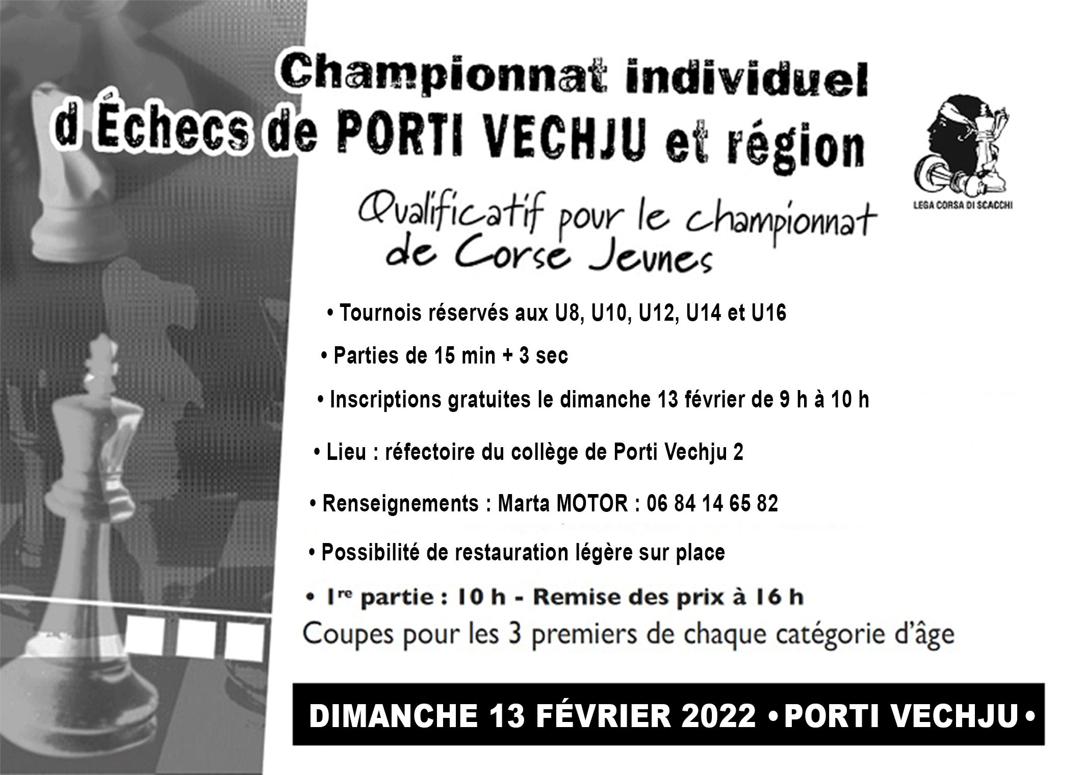 2, rue Commandant Lherminier 20200 Bastia Tel. : 04 95 31 59 15 E-mail : corse-echecs@orange.fr |